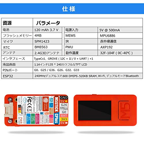 M5Stack M5StickC Plus ESP32-PICOミニIoT開発ボードm5stack iotキット フィンガーコンピューターカラーLCD